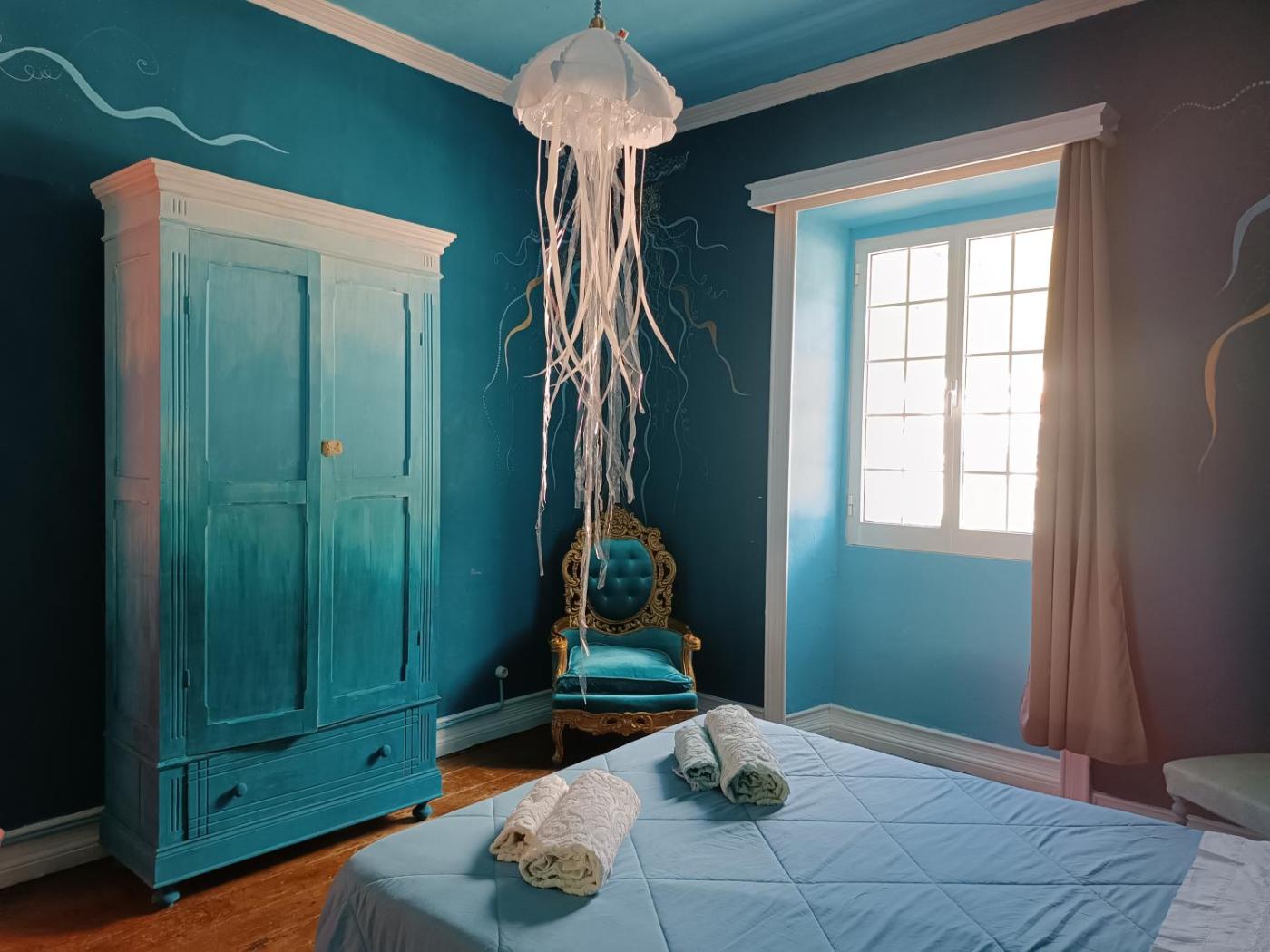 Quarto Duplo com Casa de Banho Privada Externa. The double room includes a private bathroom fitted with a shower and a hairdryer. The double room offers a wardrobe. The unit has 1 bed. ;