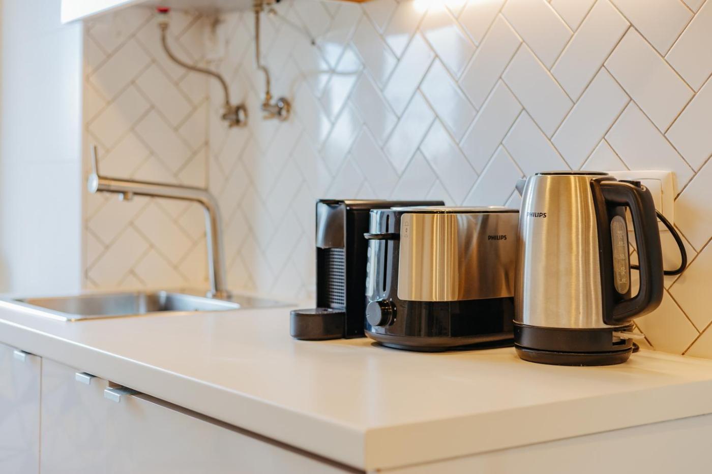 Este apartamento com ar condicionado tem 1 quarto, uma sala de estar, uma cozinha totalmente equipada com frigorífico e máquina de café, e 1 casa de banho com chuveiro e produtos de higiene pessoal gratuitos. Toalhas e roupa de cama são providenciadas neste apartamento.