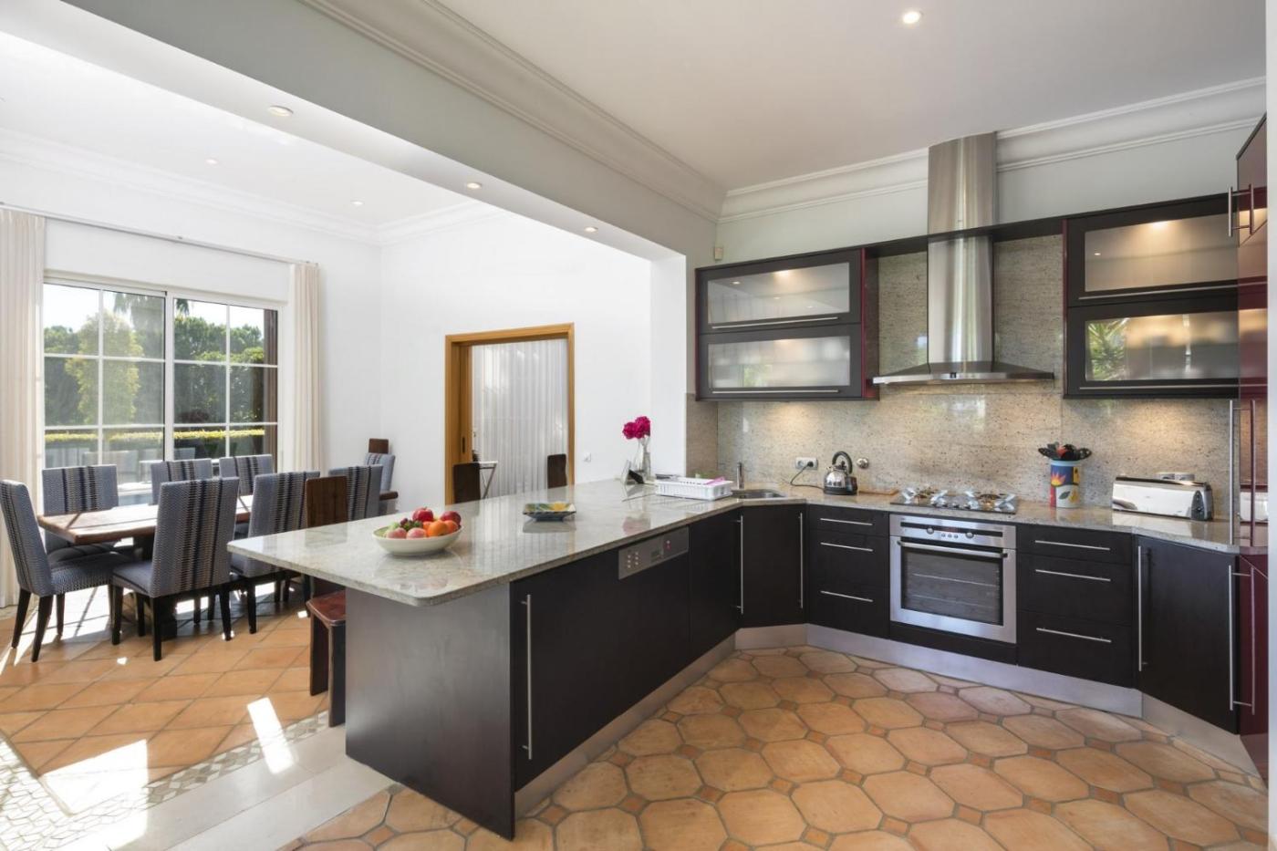 Esta villa com ar condicionado tem 4 quartos, uma sala de estar, uma cozinha totalmente equipada com frigorífico e máquina de café, e 4 casas de banho com bidé e chuveiro. Toalhas e roupa de cama são providenciadas nesta villa.