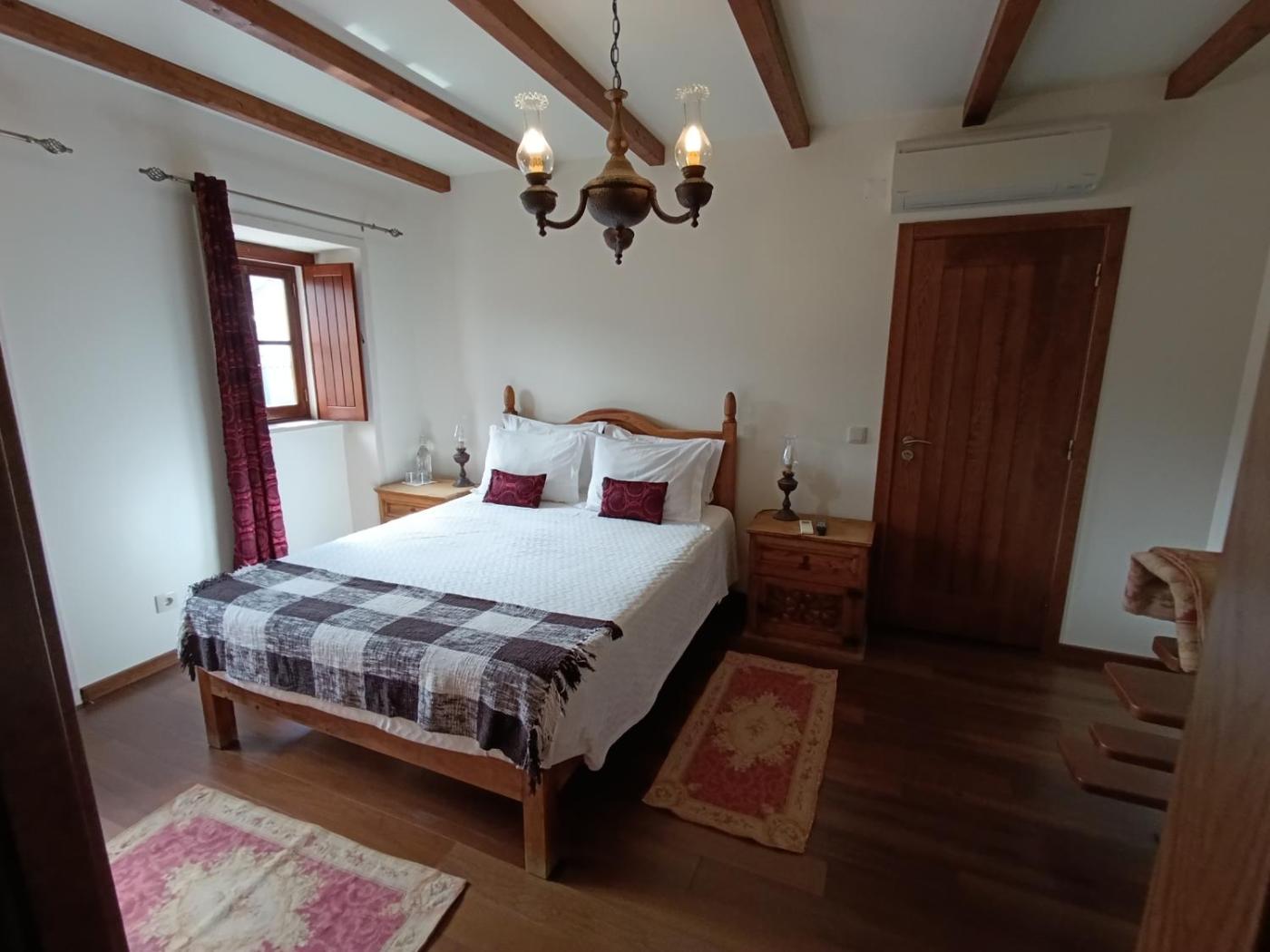 Quarto Duplo Deluxe. This double room is soundproofed, air conditioned, flat-screen TV. Teacoffee facilities are available at the common kitchen. This is a cozy ceiling bedroom, the height is limited and is not recommended for people with more than 1,80m or limited mobility. Recommended for families with children until 10 years old. ;