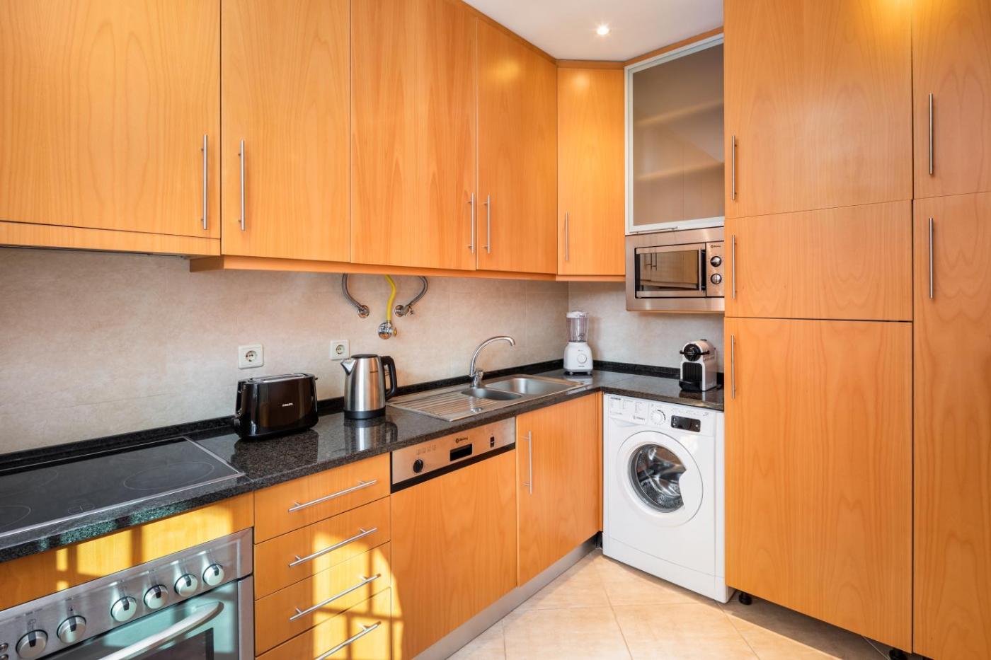 Este apartamento com ar condicionado tem 2 quartos, uma sala de estar, uma cozinha totalmente equipada com frigorífico e máquina de café, e 2 casas de banho com bidé e chuveiro. Toalhas e roupa de cama são providenciadas neste apartamento.